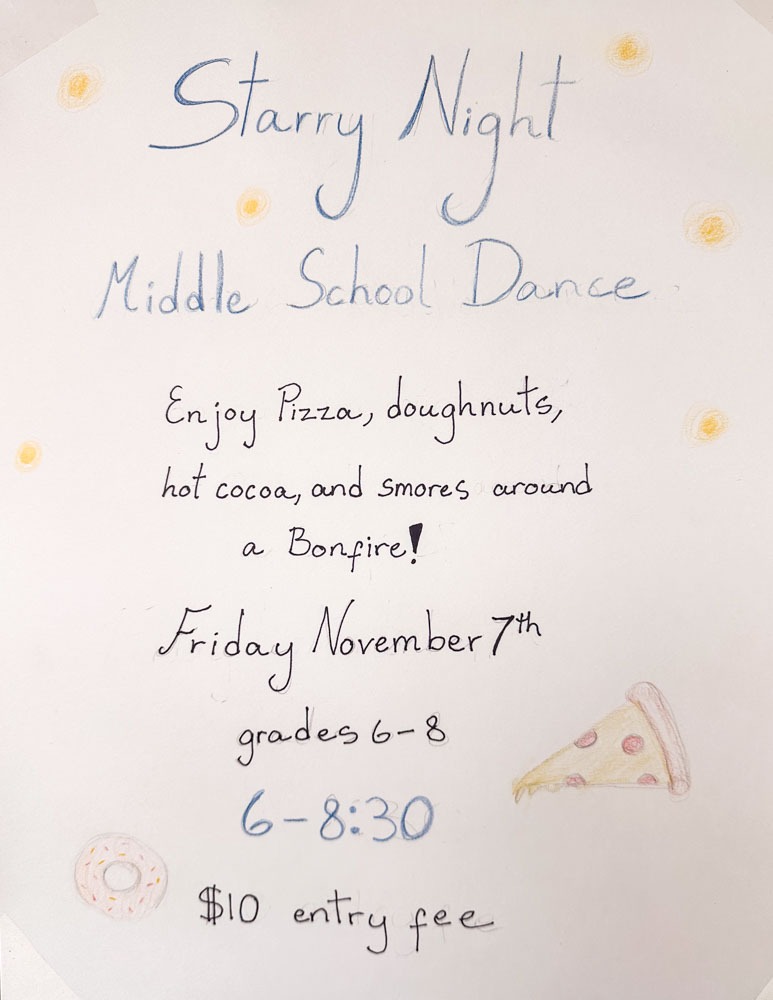 The CWS 8th grade class announces a Starry Night Dance for middle school students on Friday, November 7 at Charlottesville Waldorf School! Join us for an evening of music, fun, and friends under a starry winter sky.